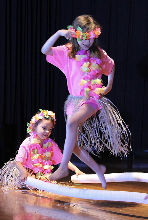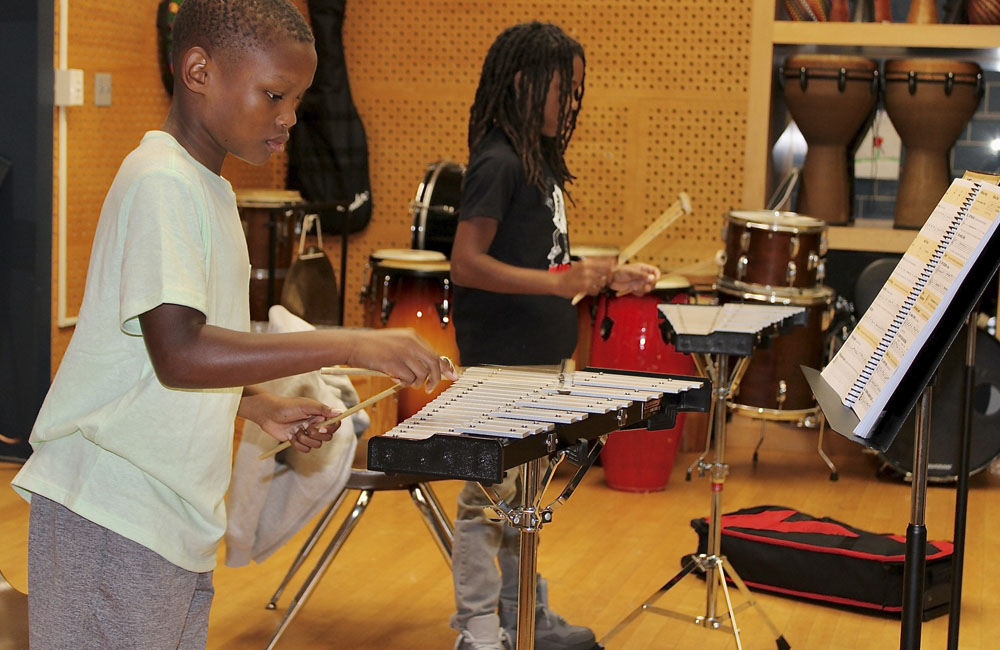 Through Orff-Schulwerk and Kodaly methods, children learn the elements of music: rhythm, melody, expression, tone color, style, harmony, and form. Experiences include singing, listening, playing instruments, moving to music, reading, and improvising. Children demonstrate these music skills at performances.