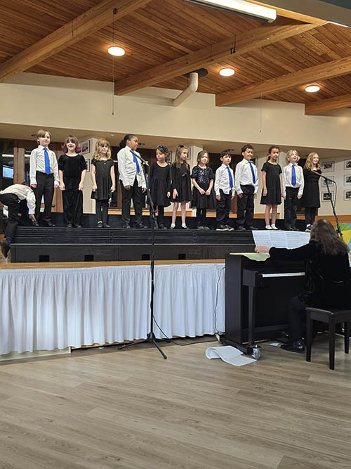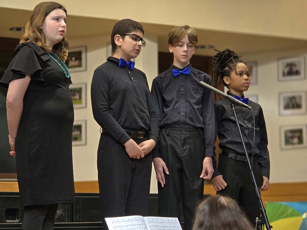 The ensemble features singers in third through eighth grade. Intermediate Choir offers a deeper understanding of choral techniques, and children are exposed to music which they do not experience in General Music class.